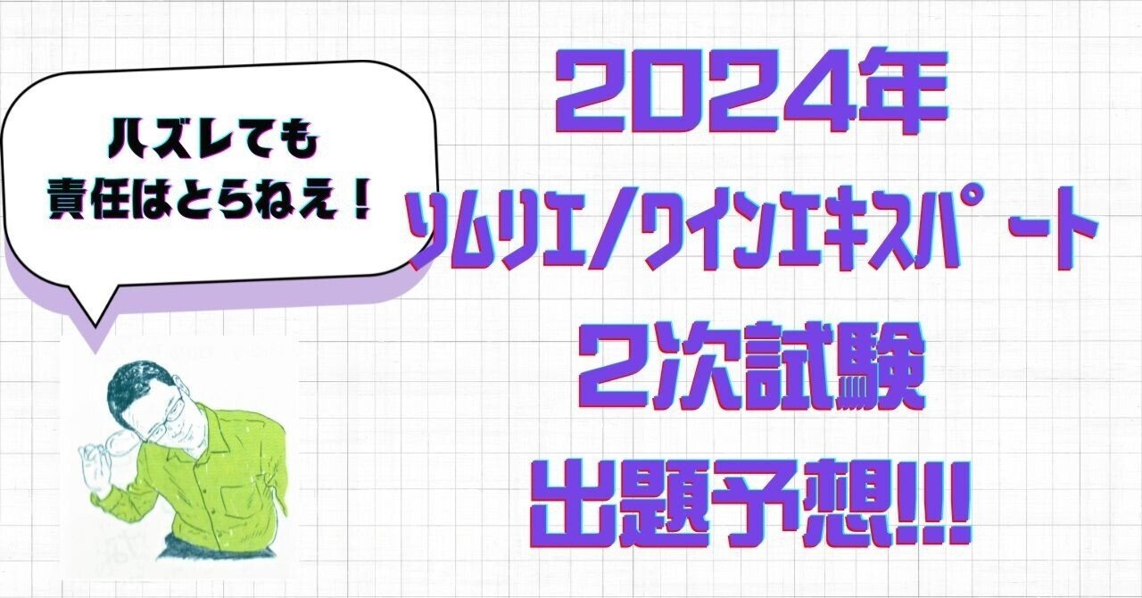 ※この予想は、シノハラが個人的に行っているものであり、在籍するワインスクール等とは一切関係ありません。ご質問・クレーム・誹謗中傷・その他諸々、何かありましたら、直接 シノハラまで仰ってください。 ※前提として、事前に「こんな出題だろう」と予...